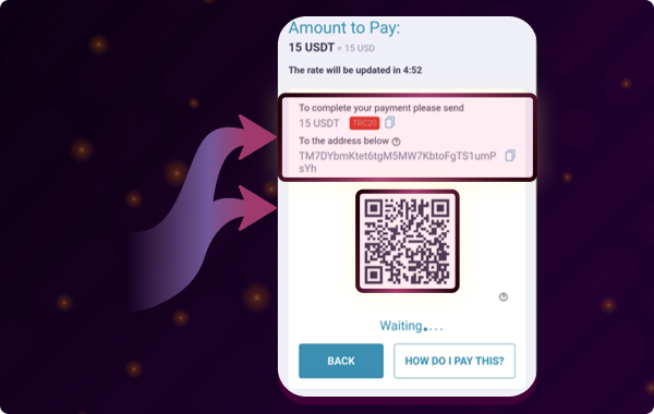 We have two methods of deposit using cryptocurrency, you will have one available to you depending on your location selection.