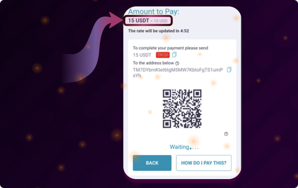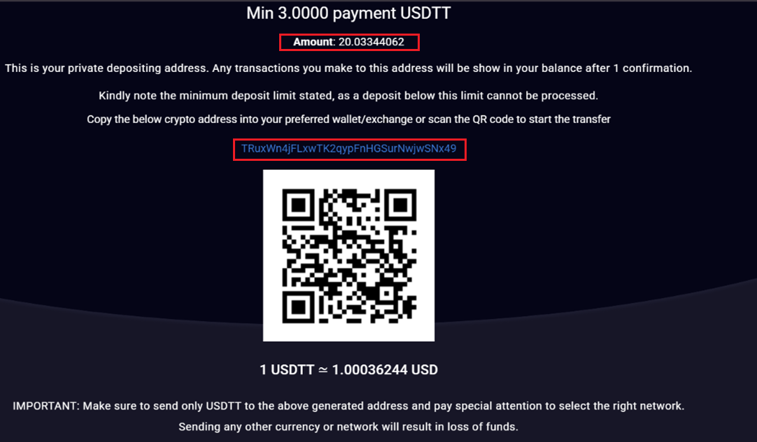 4. Next, you need to transfer to the address that is shown to you, exactly the amount in the network that you have selected.
