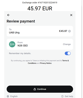 4. A new window opens (please be sure to turn off the block on pop-up). Confirm that you are buying cryptocurrency and click on the blue button with the deposit amount in euros.